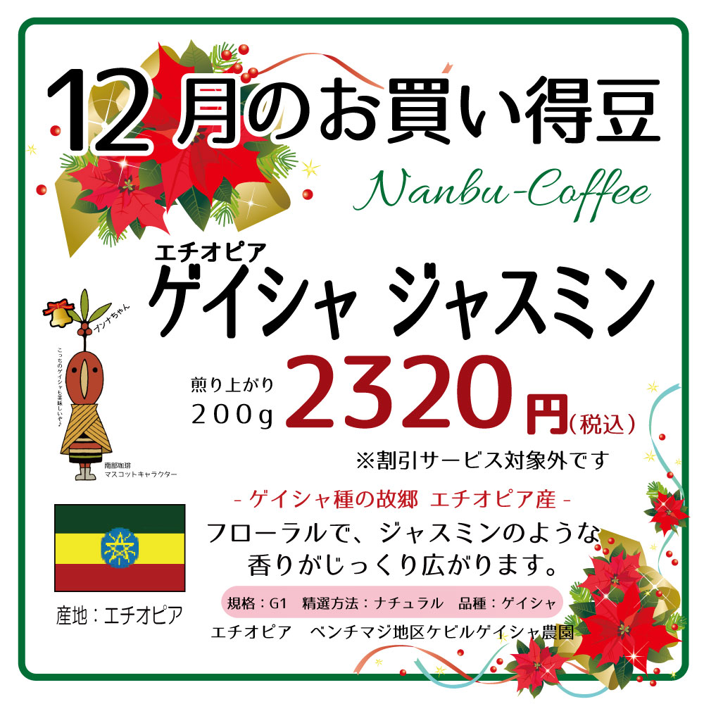 12月のお買い得豆 は「エチオピア『ゲイシャ ジャスミン』」